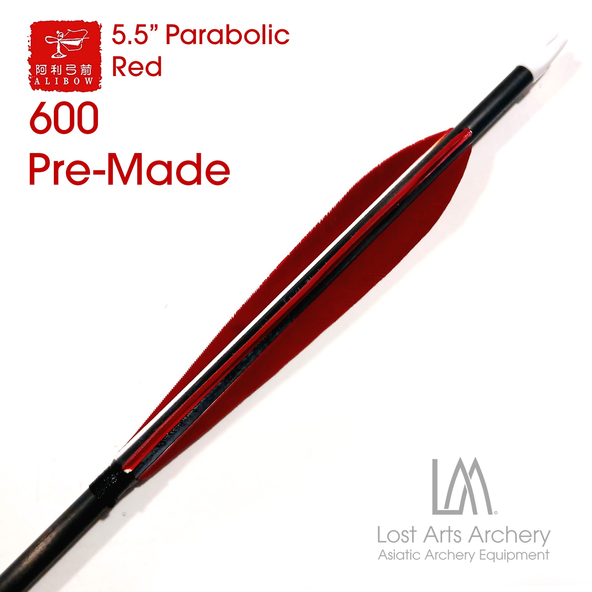 Ali Bow Pre-Made Carbon Arrows 600 spine - Red 5.5" Parabolic